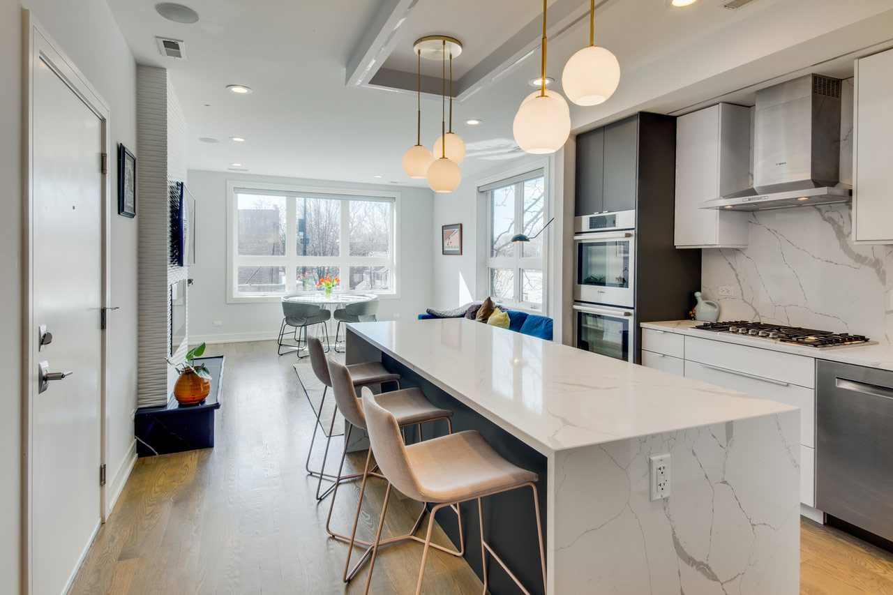 Welcome to this beautiful modern newer construction built in 2018, 3 bed/2.1 bath condo in the HOT Bowmanville/Lincoln Square area. Close to CTA/Brown & Red line, Winnemac Park, great restaurants, and coffee shops all in walking distance. .Built in 2018, the unit has 9ft ceilings and in-unit laundry. Walk into a chef’s dream kitchen with all stainless-steel appliances, quartz island with ample counter space, wine fridge, and designer finishes. Open concept living and dining room combo add the modern fireplace makes a great space to entertain guests. Spacious primary room is filled with features like the walk-in closet, en suite bathroom with double vanities, heated floors, and the balcony! Unit comes with one exterior covered parking space, storage, and rooftop. Amazing opportunity for a modern move-in-ready condo!