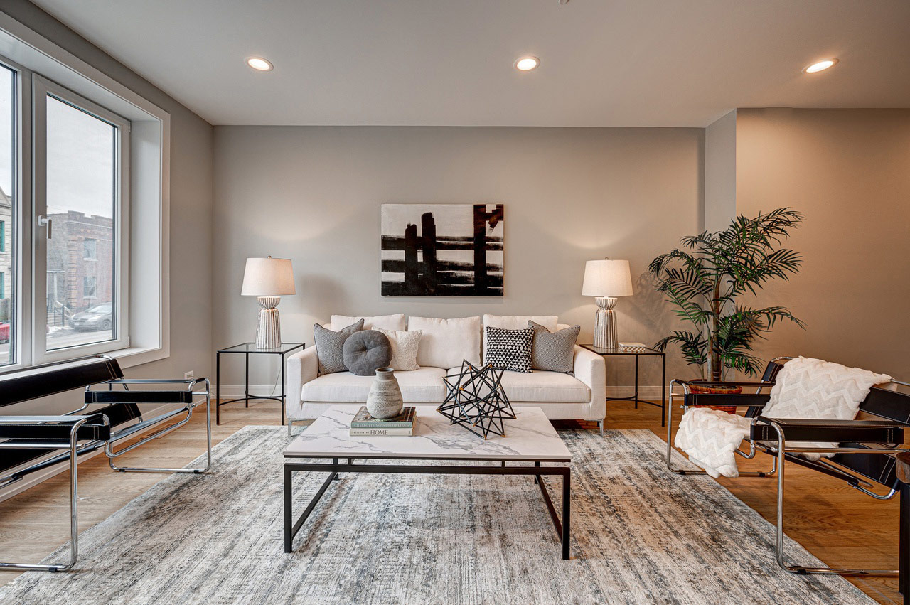 Welcome to 2448 W Diversey, a collection of 3 large, brand-new construction units in the highly sought-after Logan Square. The design juxtaposes sleek lines with organic shapes. Using contracting elements and warm textures to re-imagine the traditional residence. Modern, clean lines in this black & white palette are a timeless and classic feel, with endless from subdued to statement-making. Warm-style woods, high-contrast dark finishes, and sleek stones to create a cozy, modern, & chic aesthetic. Expansive living spaces await your splash individuality to adorn them. This massive 4 bedroom, 2.1 bath duplex down lives like a single-family home, with all of the bedrooms on one floor. The chef’s kitchen has a large island, a Bosch stainless steel appliance package, and plenty of storage. Separate living and family rooms allow for entertaining of all kinds. The primary suite includes two large, walk-in closets, a private bath with double vanity, and a separate shower & tub. A huge, covered terrace overlooking the family room gives you the ability to grill, entertain, and enjoy your morning coffees outdoors.